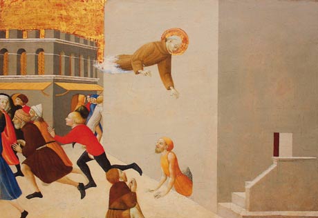 One of the great literary works of the past century dealing with levitation, combining the technology of aviation with Christian mysticism, is Blaise Cendrars’s Le lotissement du ciel (literally "The Parceling of the Sky" but translated as Sky Memoirs). Begun during World War II and published in 1949, Cendrars’s book presents a kind of literary collage. Prose poetry, exotic travelogues, personal memoirs, and found texts, including scholarly documents, are all pasted together in a complex construction. Cendrars is renowned as an adventurer, and the stories he recounts here do not disappoint: there is his trip across Siberia with a jewelry merchant, his pilgrimage to a strange Brazilian doctor obsessed with Sarah Bernhardt, his voyage from Rio to Cherbourg with 250 tropical birds (none survive the boat ride), his work as a war correspondent for British headquarters in Paris. But it is the death of his son Rémy, a pilot who perished in the early months of the war, that provides the novel’s "center of gravity." Often Cendrars’s "parceling of the sky" is interpreted as an act of mourning. He had spoken with his son about the idea of proposing St. Joseph of Copertino, famed levitator, as the patron saint of French aviators. Though Cendrars’s plan was foiled by the American air force, which adopted St. Joseph as their own guardian angel in 1943, his fascination for the flying priest was unabated. While hiding from the Gestapo in Aix-en-Provence, he spent his time in the library immersing himself in the study of levitation, and in particular the life of St. Joseph.